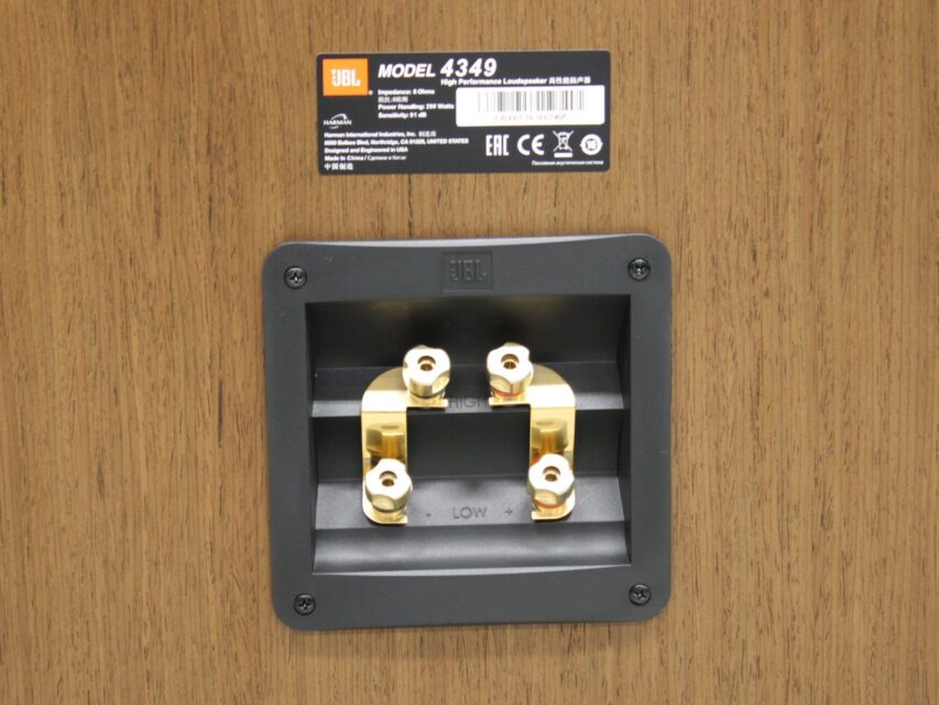 ●キャビネットは、JBLスタジオモニター伝統のブルーバッフルとウォールナットによる背面、ベースボードを含む5面リアルウッド仕上げ