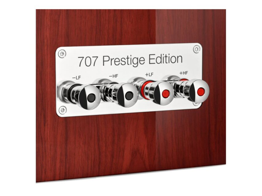 ●エレガントなアルミニウム製ターミナルプレートに加え、かつて805 D3 Prestige Editionに採用されたサントス・ローズウッドにインスパイアされた豪華な仕上げ、サントス・グロスが奢られています