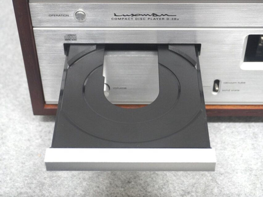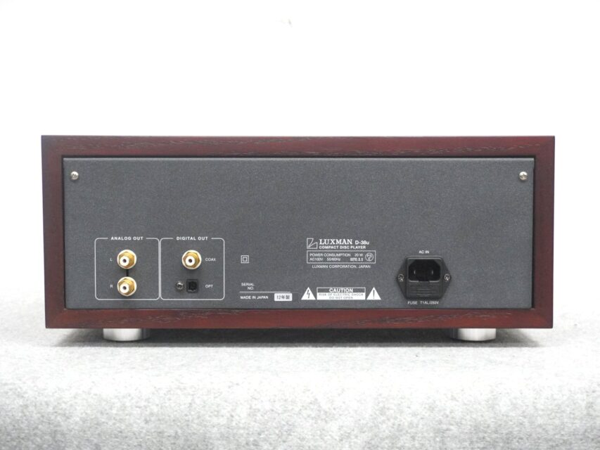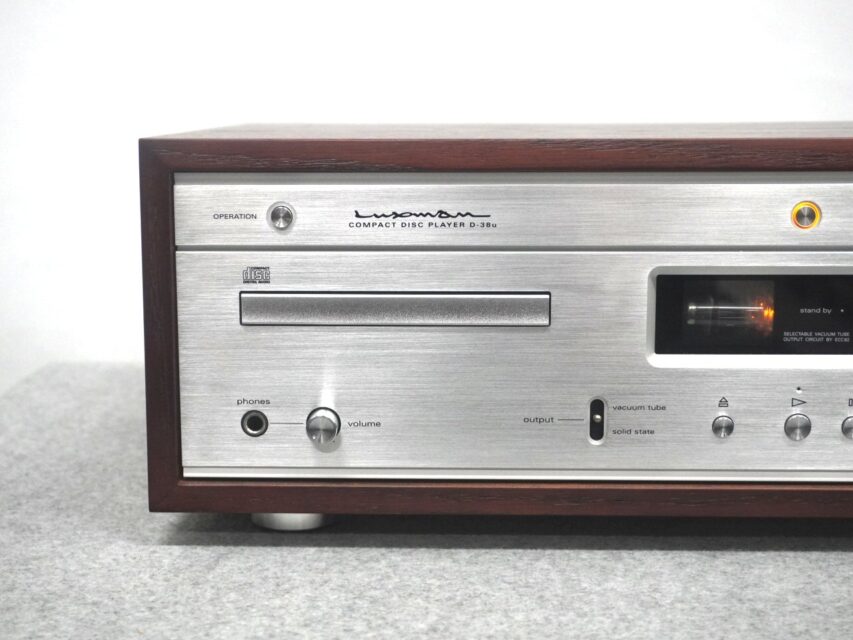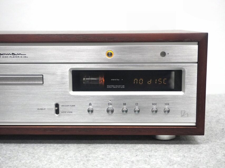 ●38の名を冠する初のCDプレーヤーとして、D-38uにはフロントパネル中央下に設けられたレバースイッチを上下させることで、性能を重視した高純度の半導体出力と、真空管ECC82(12AU7)を使用したカソードフォロア回路によって適度な倍音成分を付加した艶やかな真空管出力という、二つの音質をお好みによって切り替えることの出来る機能を採用しました。